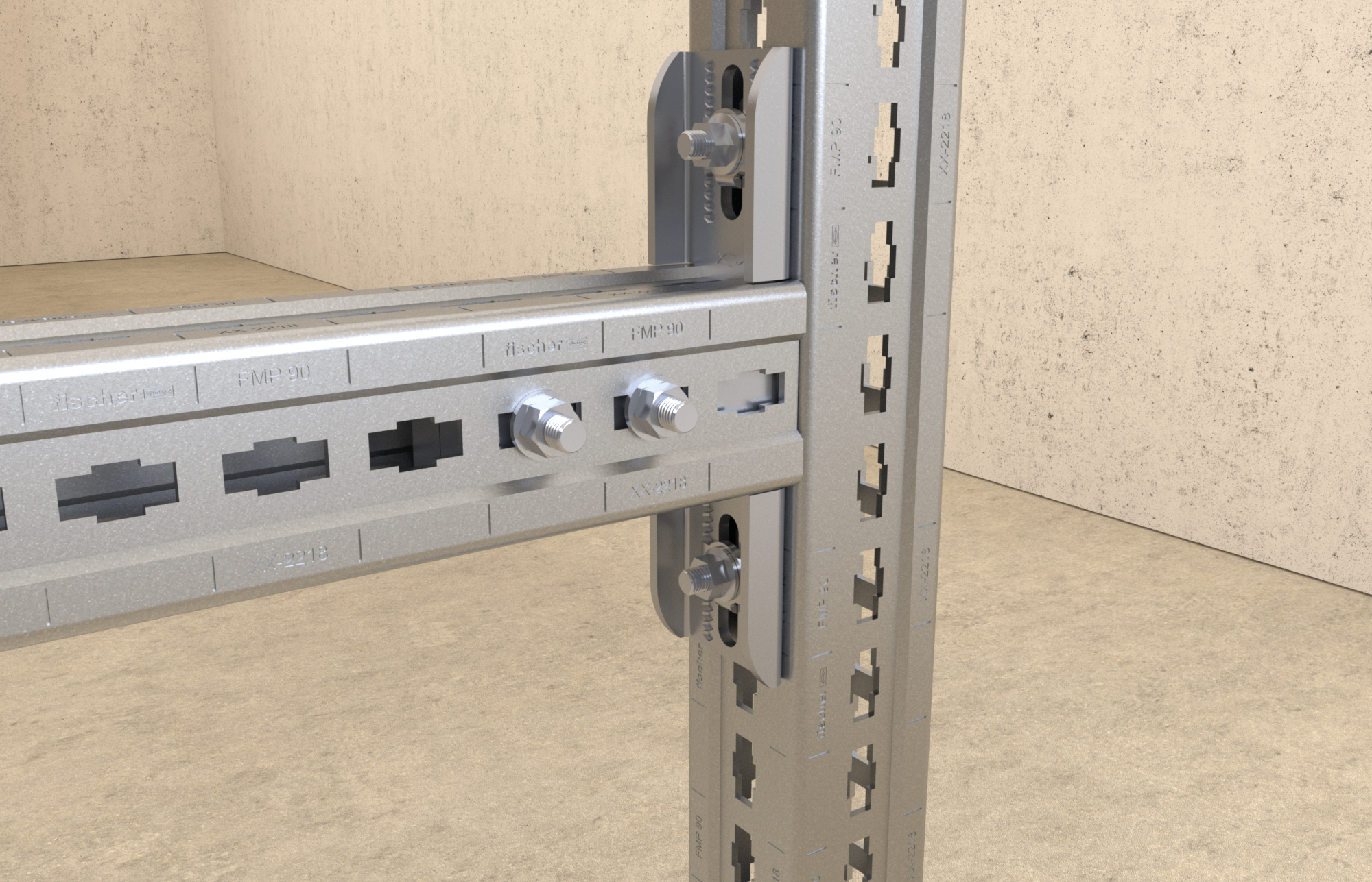 FMA umí s pomocí spojovacích šroubů FMHB v libovolném místě připevnit montážní lištu FMP k jiné, průběžné liště FMP pod pravým úhlem. Alternativou může být upevnění na nosnou stavební konstrukci z oceli nebo jiného stavebního materiálu. Povrchová úprava žárovým pozinkováním je vhodná do vnějšího prostředí.