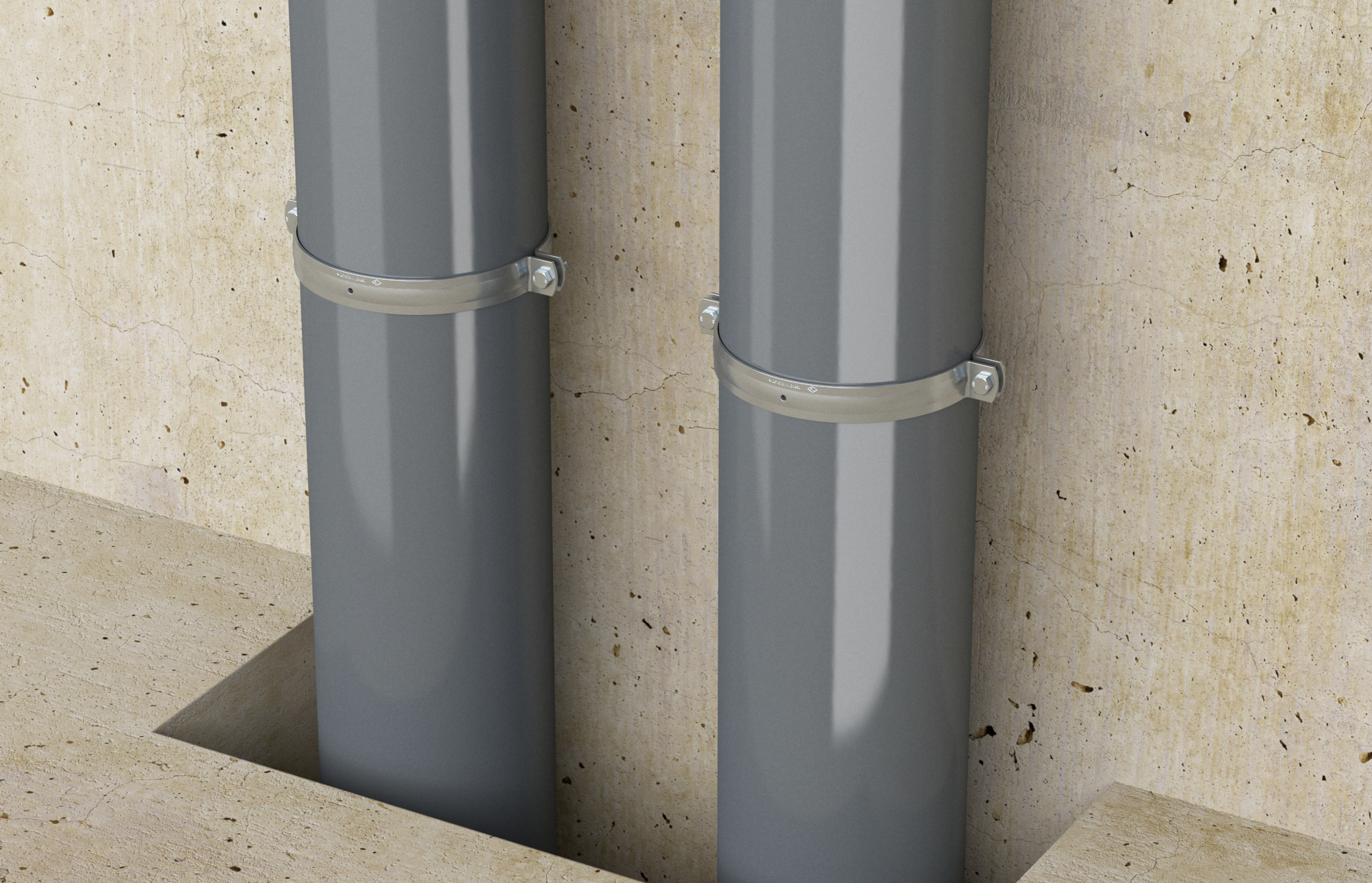 Dvoušroubková objímka bez izolační pryžové vložky pro uložení těžkých potrubí; s VdS a FM certifikátem