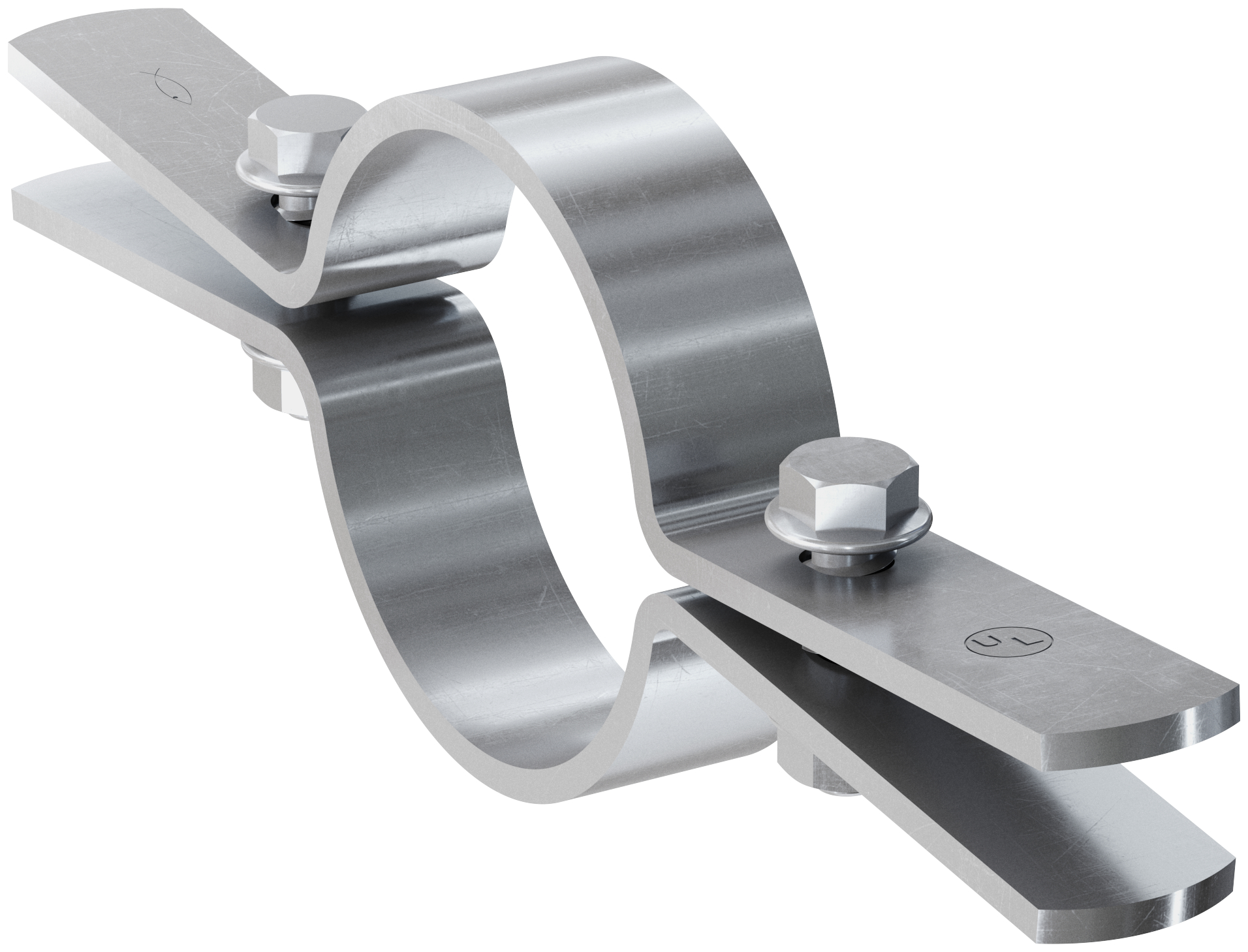 Objímka s velmi snadnou montáží, která zabraňuje svislému posuvu svislého kovového potrubí. Povrchová úprava galvanickým pozinkováním poskytuje výrobku dlouho trvající ochranu proti korozi ve vnitřním suchém prostředí.