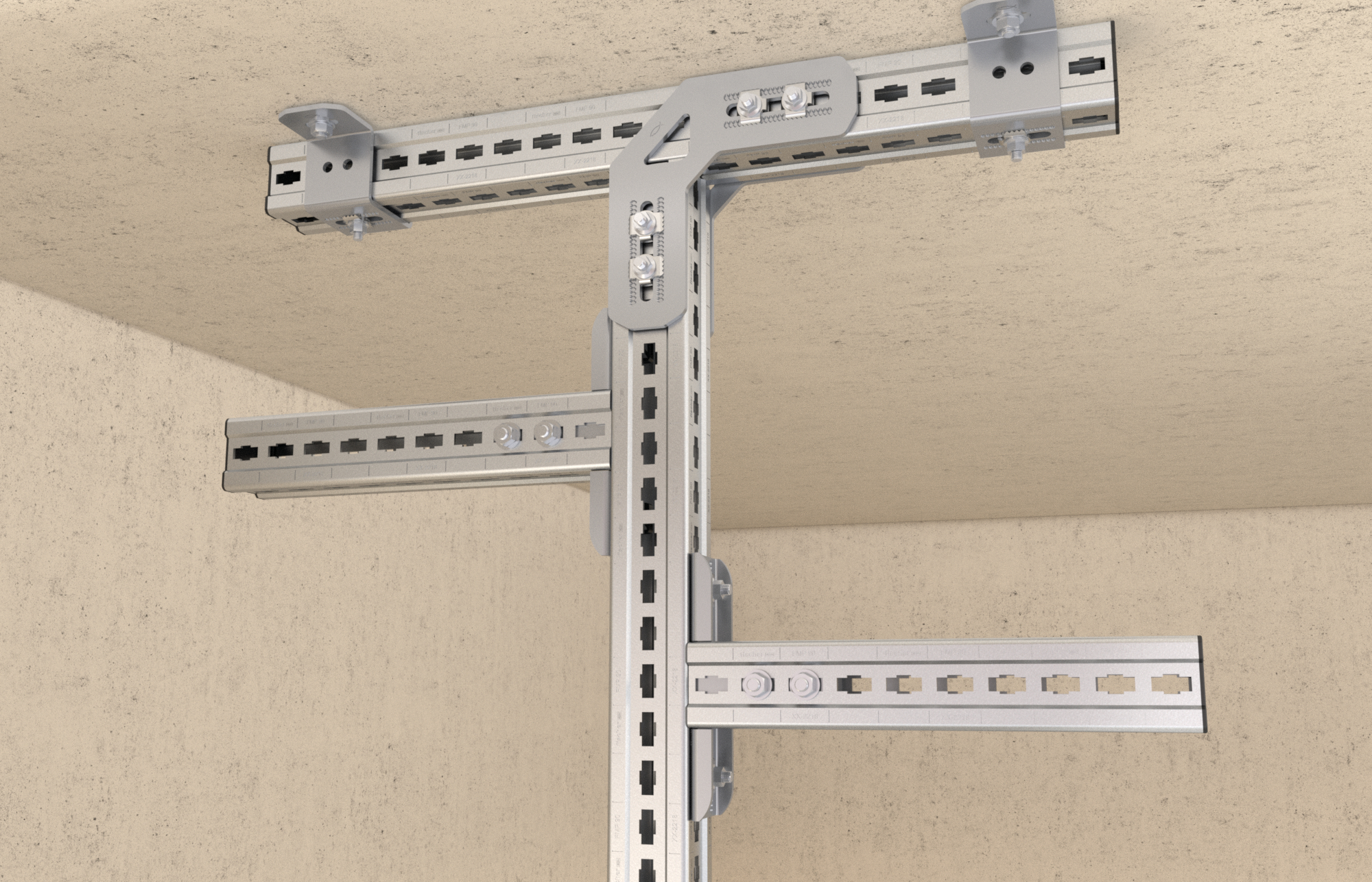 Snadné upevnění montážní lišty podél na stavební konstrukci nebo křížem k jiné montážní liště