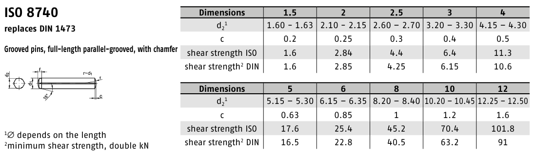Kolíky DIN 1473 jsou válcové kolíky s podélným rýhováním, které zajišťují pevné a přesné spojení součástí. Díky svému tvaru a rýhování se po zatlučení rozepnou a pevně se zaklíní v otvoru, čímž zabraňují pohybu spojených dílů.
