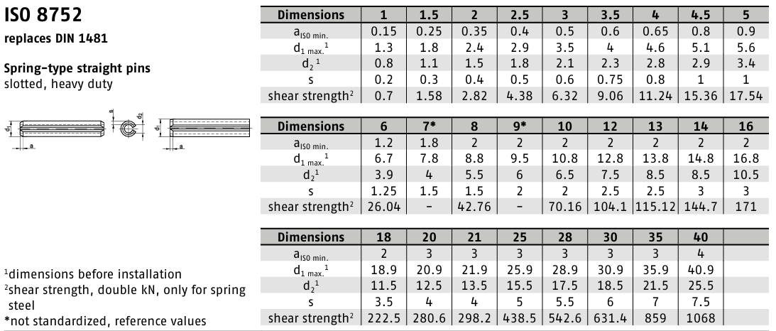 Kolíky DIN 1481 jsou pružné válcové kolíky se štěrbinou, které slouží k přesnému a pružnému spojení součástí. Díky své konstrukci umožňují malé axiální pohyby a vyrovnávají malé nepřesnosti ve výrobě.