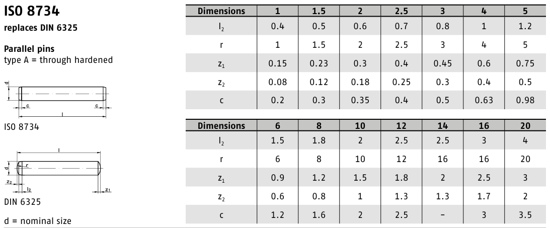 Kolíky DIN 6325 jsou válcové kolíky z kalené oceli, které zajišťují pevné a přesné spojení součástí. Díky své vysoké tvrdosti odolávají vysokému zatížení, vibracím a opotřebení.
