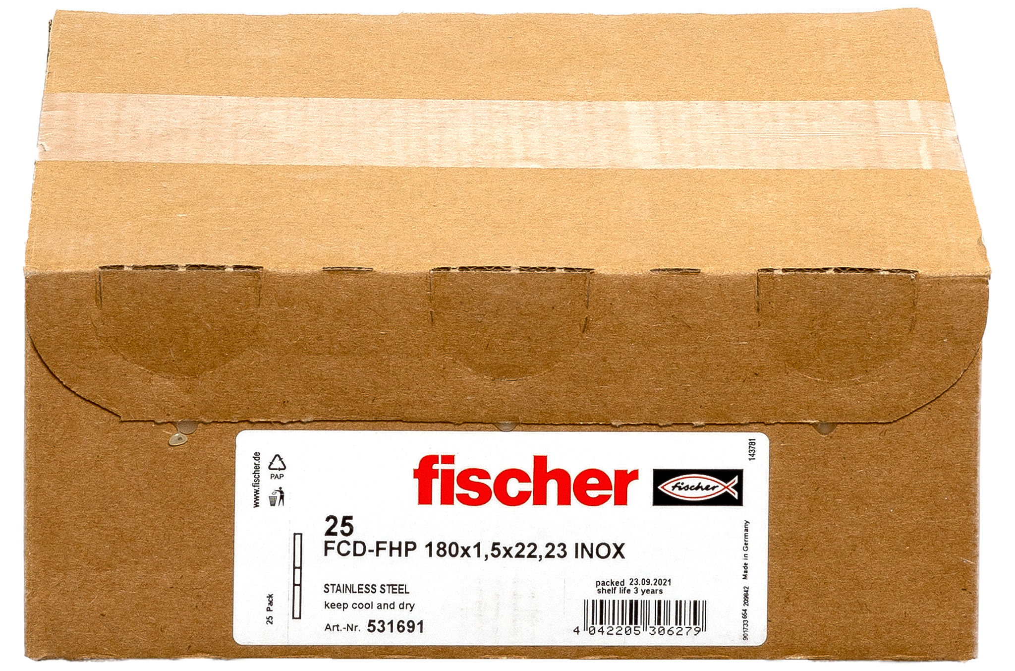 Řezný kotouč fischer FCD-FHP se oproti běžným kotoučům vyznačuje vysokou odolností a životností, které uspokojí i nejnáročnějšího zákazníka. Vysoce kvalitní pojivo a odolné jádro kotouče zaručují nižší hlučnost, minimum otřepů a jisker, maximální stabilitu. Nástroj neobsahuje železo ani síru, takže nezpůsobuje korozi na řezech v nerezové oceli.