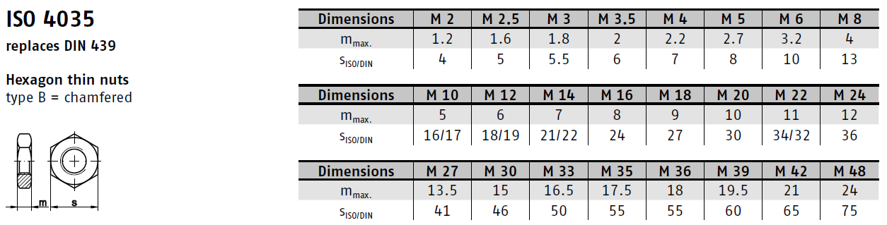Matice DIN 439B je nízká šestihranná matice, ideální pro aplikace, kde je prostor omezený. Díky své výšce umožňuje utáhnout spoj i v místech, kde by se vyšší matice nevešla.