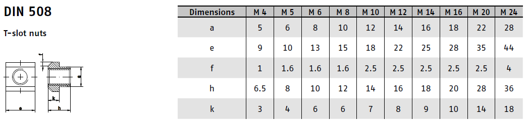DotazMatice do T drážky DIN 508