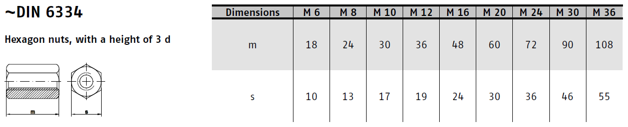 Matice DIN 6334 je speciální typ šestihranné matice, která se vyznačuje výrazně větší výškou než standardní matice. Díky své délce umožňuje vytvořit spoje v situacích, kdy je potřeba větší vzdálenost mezi spojovanými prvky.