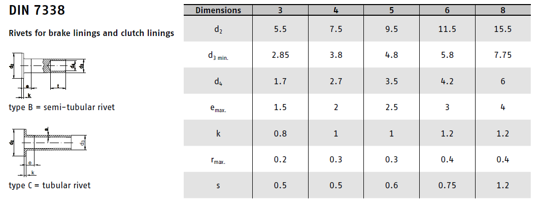 DotazNýt s plochou hlavou DIN 7338A pro brzdy a spojky