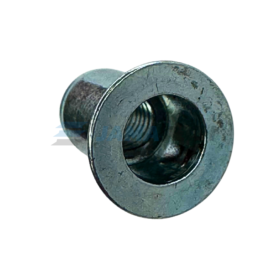 Nýtovací matice s plochou hlavou a hladkým tělem. Nejběžnější materiály jsou zinkovaná ocel, nerez nebo hliník.