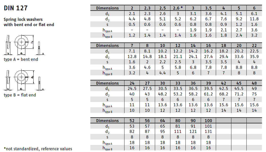 DIN 127B označuje speciální typ pružné podložky s obdélníkovým průřezem, která je navržena tak, aby zajistila pevnost a odolnost šroubových spojů, zejména v podmínkách vibrací nebo střídavého zatížení. Díky svému tvaru a materiálu se podložka pruží a vytváří tak konstantní přítlak na šroub, čímž zabraňuje jeho samovolnému povolení.