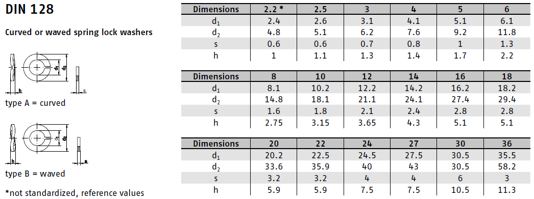 DIN 128 označuje skupinu speciálních pružných podložek, které se používají k zajištění šroubových spojů proti uvolnění vlivem vibrací nebo střídavého zatížení. Díky svému tvaru a materiálu se podložka pruží a vytváří tak konstantní přítlak na šroub, čímž zabraňuje jeho samovolnému povolení.