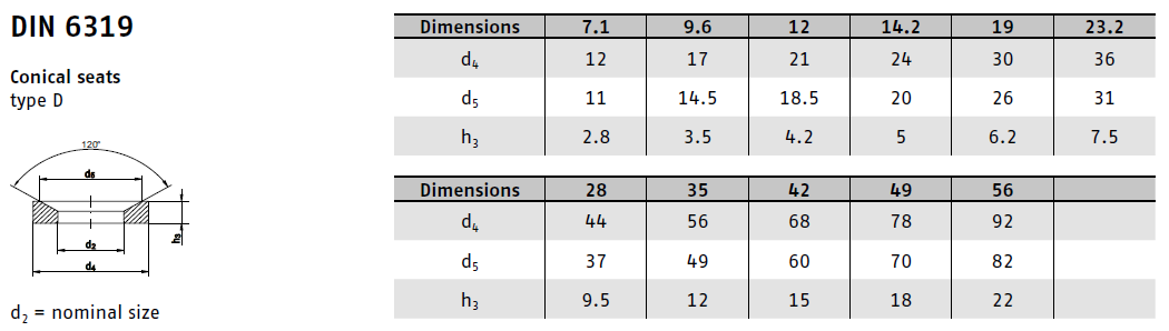 DIN 6319D označuje speciální typ podložky, známý jako kuželová podložka. Její charakteristický kuželový tvar jí umožňuje kompenzovat malé odchylky ve vyrovnání spojovaných dílů a zajišťuje tak rovnoměrné rozložení tlaku.