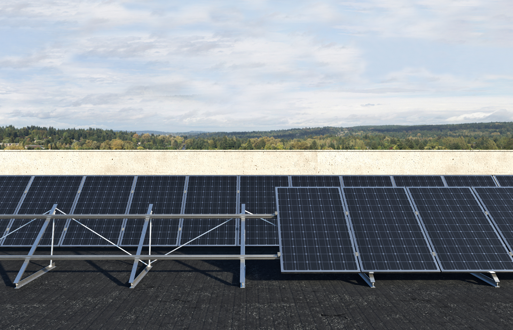 Trojúhelníkový rám je předmontovaný polohovatelný konstrukční prvek, který se používá k realizaci FV elektrárny na plochých střechách. Z výpočtu zatížení a únosnosti použitého nosníku se stanoví potřebný počet rámů, které se pospoujují nosníky, na které se dále upevňují FV panely jako na šikmých střechách. Konstrukce získá prostorovou tuhost upevněním hliníkového táhla BP AL na zadní podpěry rámů.