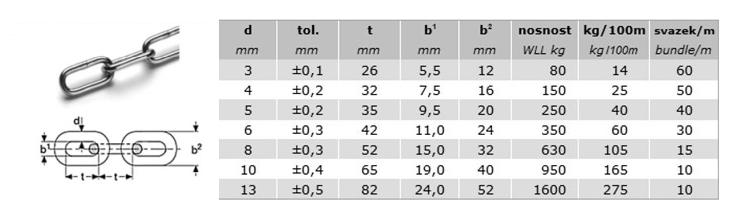 Řetěz dlouhý článek DIN 763/5685C 3 leštěný, svazek 30m