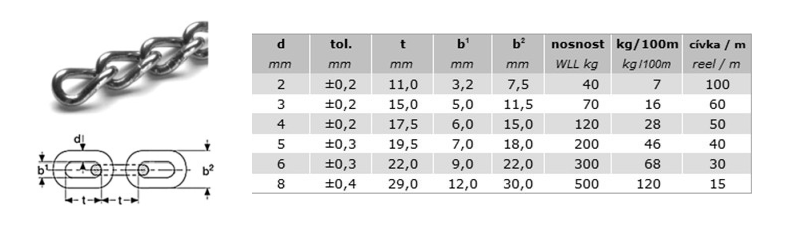 Řetěz kroucený DIN 5685A 6 ZB, cívka 30m