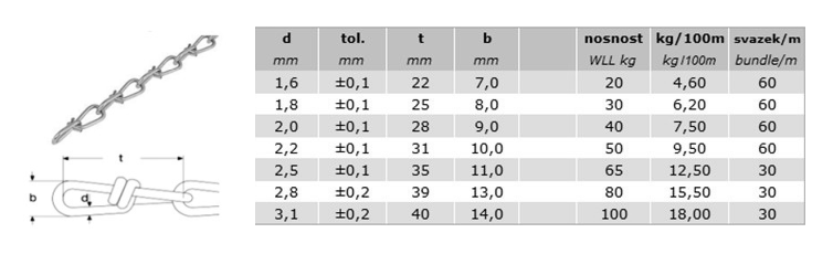 Řetěz uzlovaný DIN 5686 2,2 ZB, svazek 30m