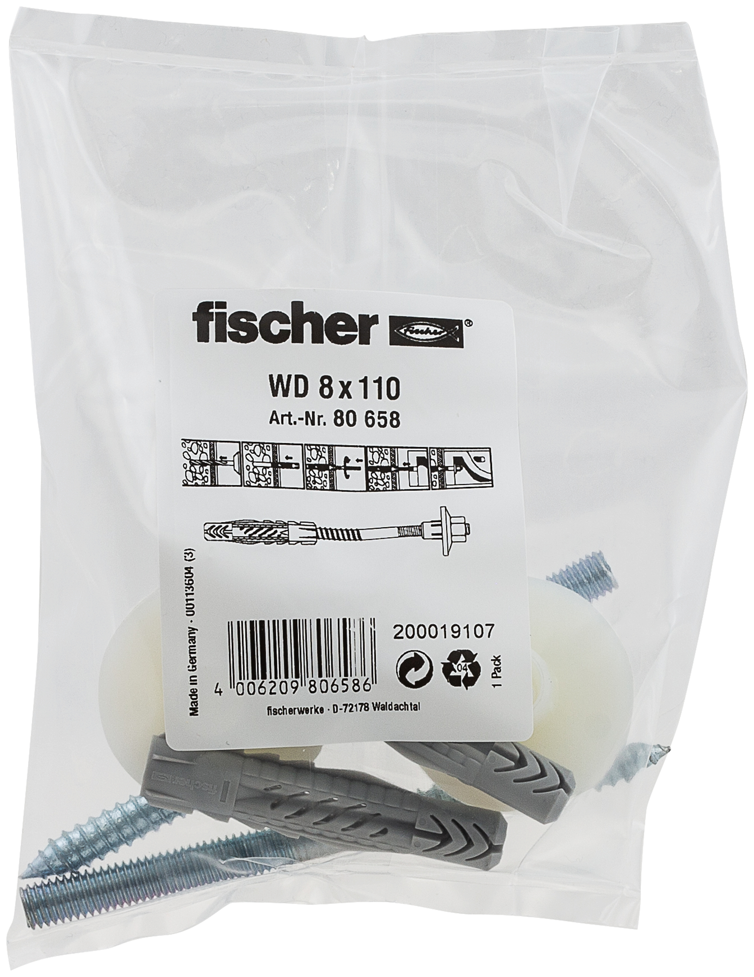 fischer sada WD obsahuje všechny prvky potřebné k bezpečnému upevnění pisoárů či umyvadel na zeď. Dvě univerzální hmoždinky UX propůjčují sadě svou všestrannost - bezvadně fungují v plném i děrovaném stavebním materiálu. Matice z tvrzeného nylonu s nákružkem je odolná stárnutí a působení čistících prostředků a zabraňuje poškození keramiky při montáži a při užívání. V sadě jsou dále dva upevňovací kombišrouby potřebného průměru a vhodné délky.