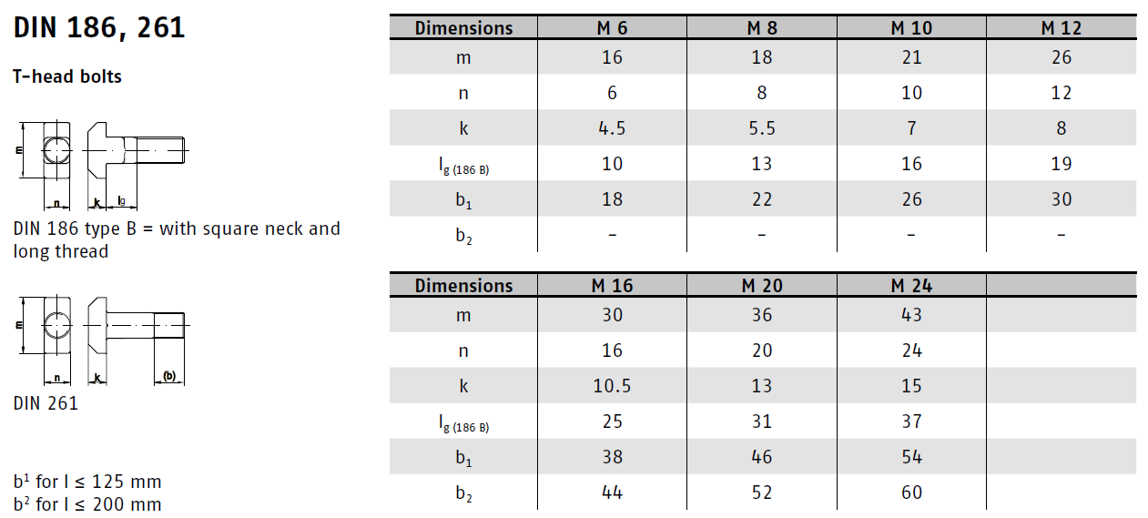 DIN 186B je norma pro šrouby s T-drážkou a čtyřhranným dříkem. Tyto šrouby se používají pro upevnění a spojování různých součástí, zejména v konstrukcích s T-drážkami.