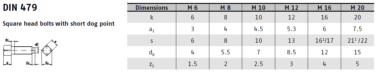 DotazUpínací šroub DIN 479 se čtyřhannou hlavou a osazeným koncem
