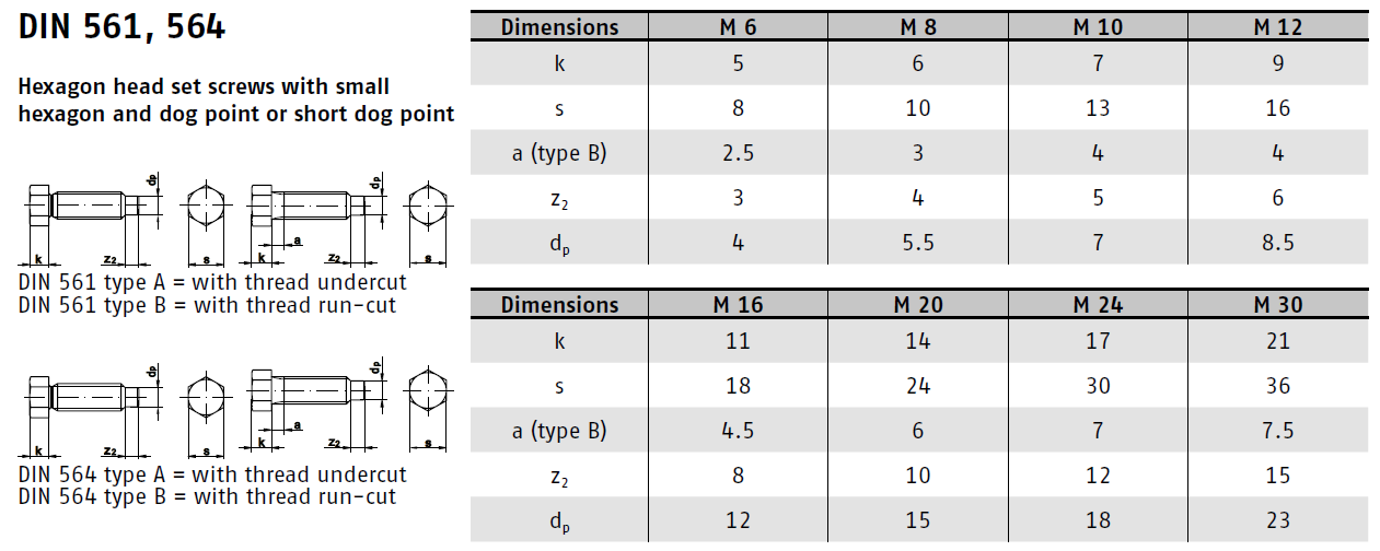 Malý stavěcí šroub se šestihrannou hlavou s plnou špičkou DIN 561