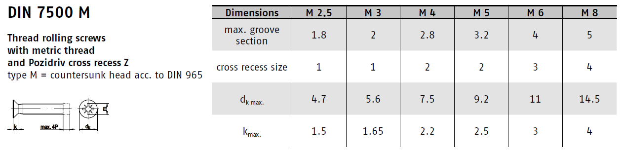 DotazŠroub závitotvářecí metrický s křížovou drážkou DIN 7500M zápustná hlava