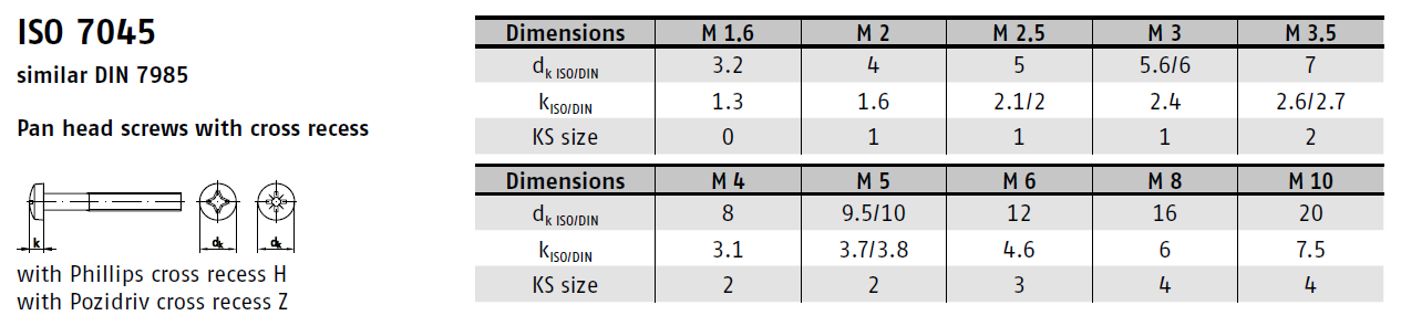 DotazŠroub s křížovou drážkou DIN 7985A půlkulatá hlava
