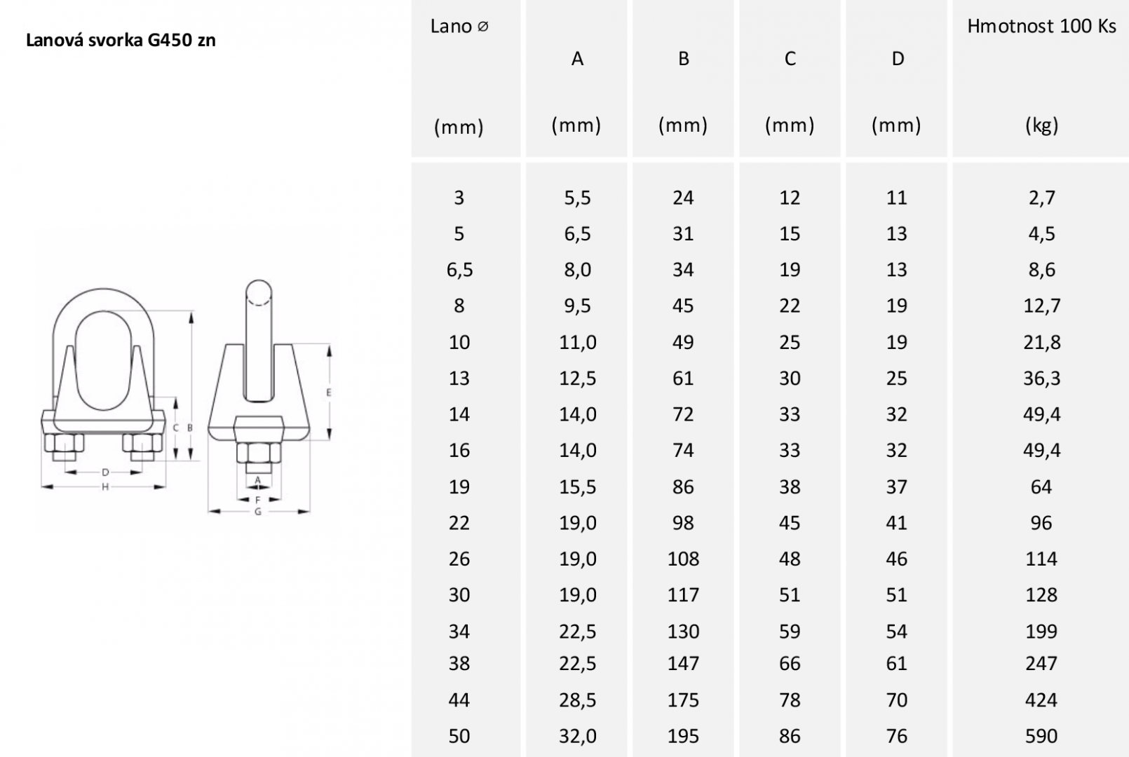 Lanová svorka G450 je vyrobena ze žárově pozinkované oceli.