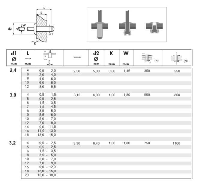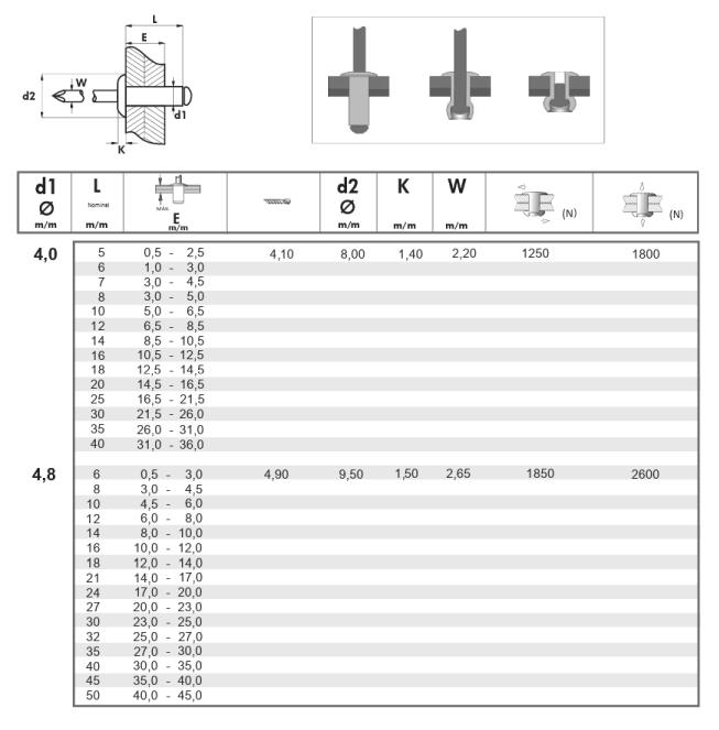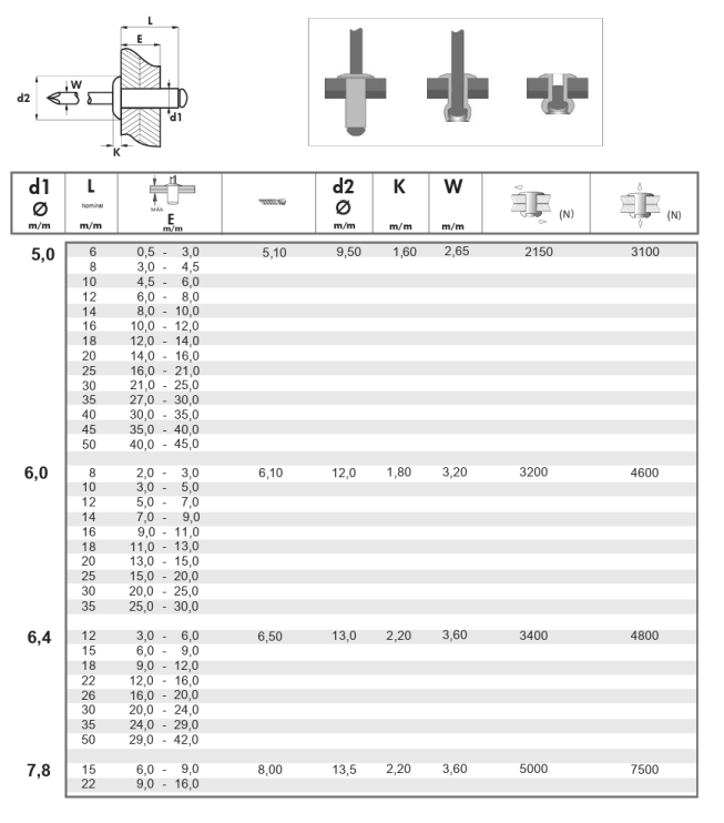DotazTrhací nýt s plochou hlavou DIN 7337