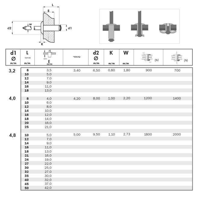 DotazTrhací nýt s plochou hlavou DIN 7337