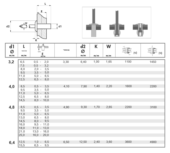 DotazTrhací nýt s plochou hlavou DIN 7337