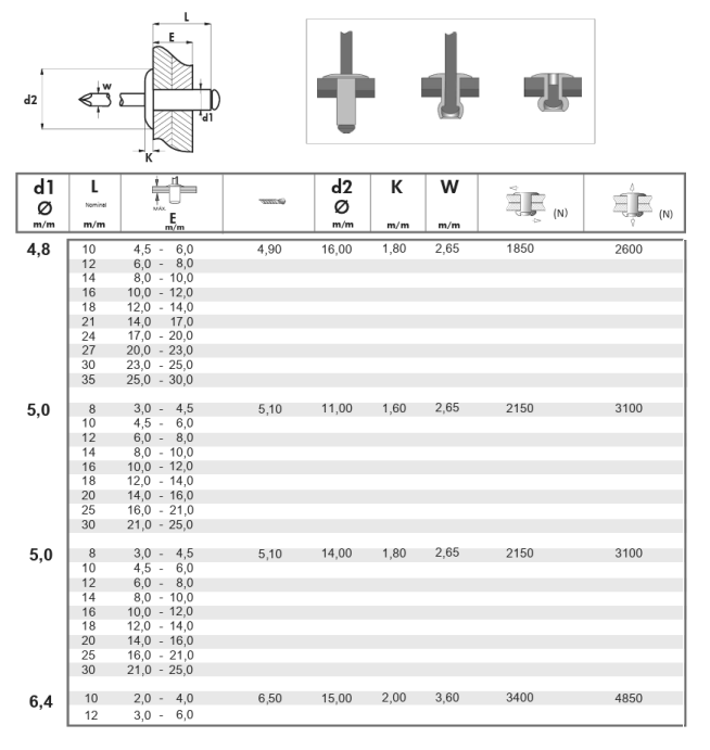 DotazTrhací nýt s plochou hlavou DIN 7337