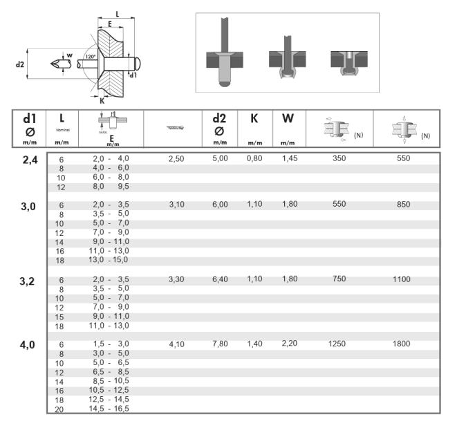 DotazTrhací nýt se zápustnou hlavou DIN 7337B