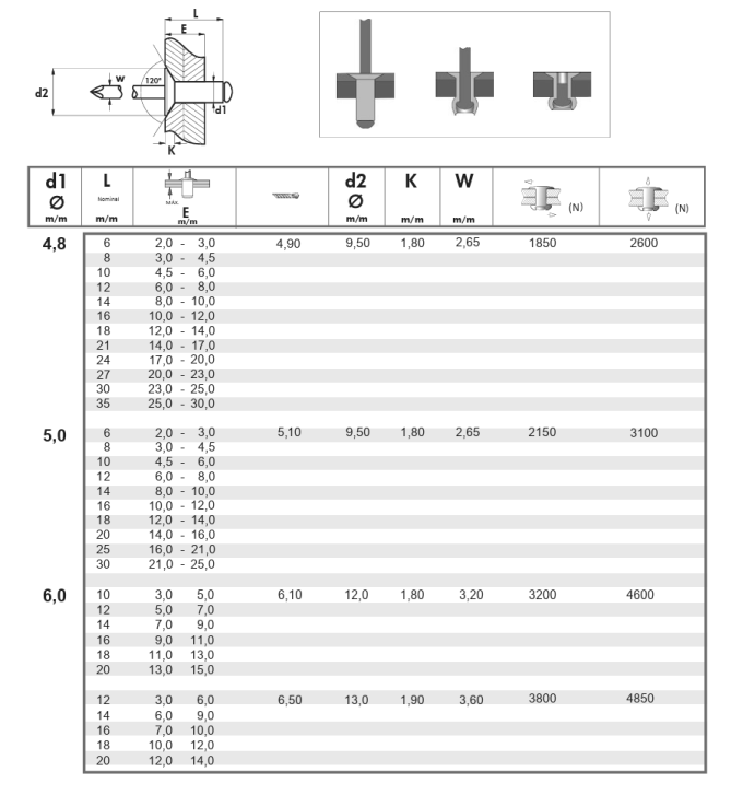 Nýt trhací DIN 7337B se zápustnou hlavou je univerzální spojovací prvek, který umožňuje spojovat různé materiály bez nutnosti šroubování. Skládá se ze dvou částí – těla nýtu a trnu. Při aplikaci speciálními kleštemi hlava vytvoří pevný spoj a trn se odlomí.