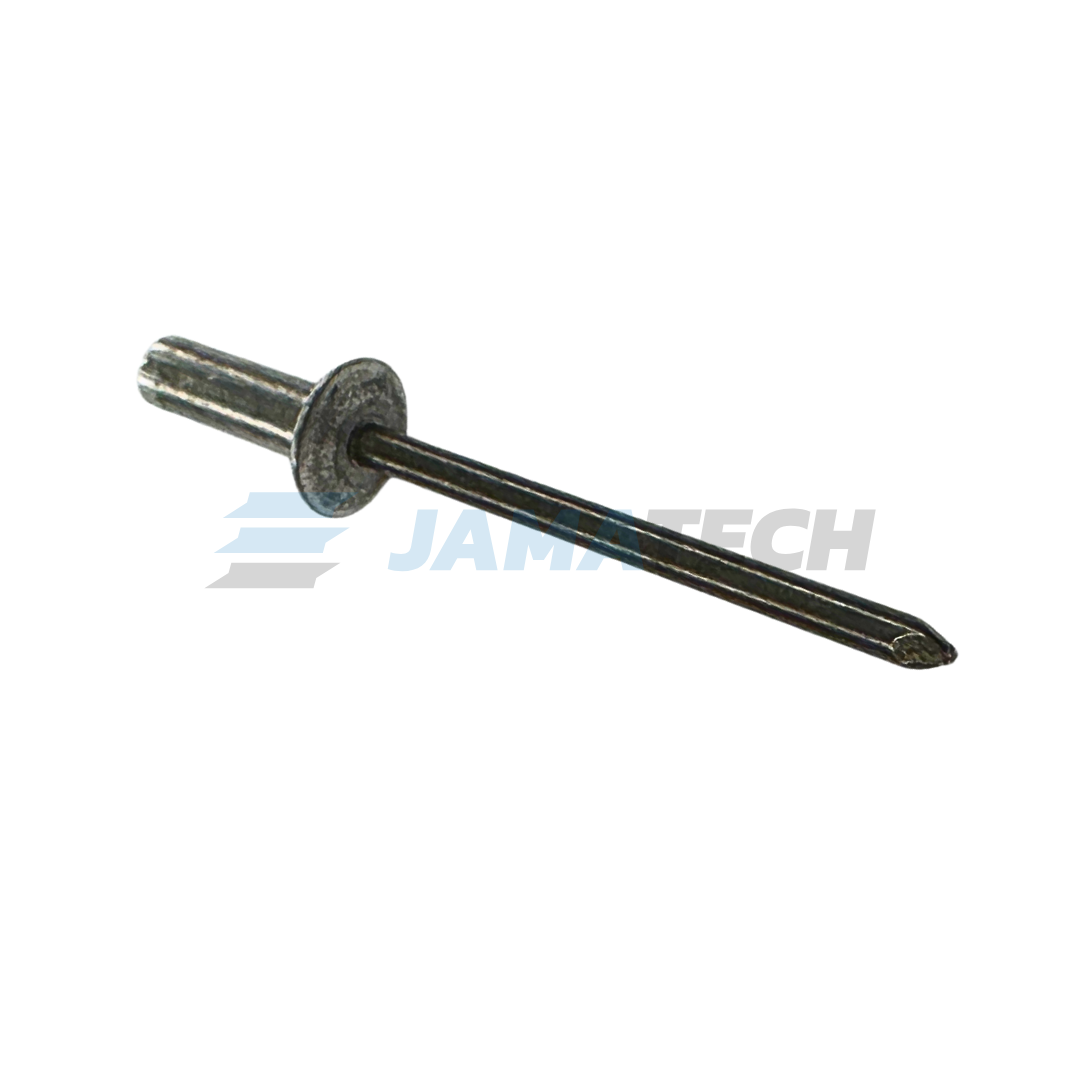 Nýt trhací DIN 7337 s plochou hlavou je univerzální spojovací prvek, který umožňuje spojovat různé materiály bez nutnosti šroubování. Skládá se ze dvou částí – těla nýtu a trnu. Při aplikaci speciálními kleštemi hlava vytvoří pevný spoj a trn se odlomí.