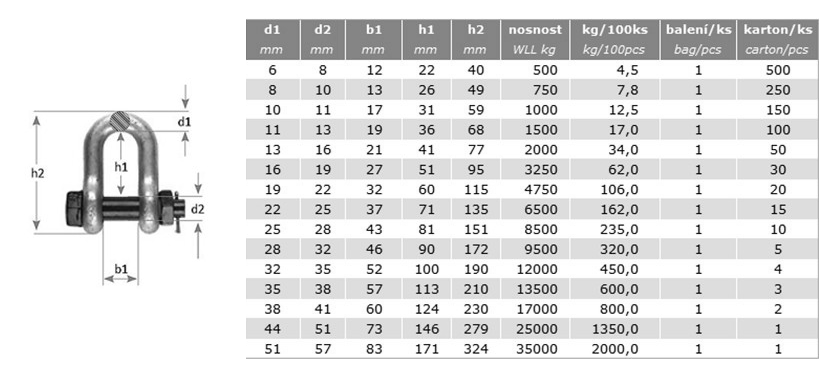 Třmen rovný pevnostní typ D se šroubem 8,5t zámek řetězu