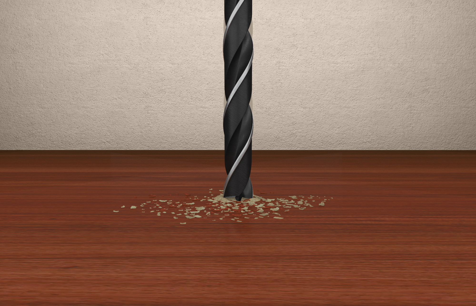 Pilotní špička umožňuje umístění vrtáku přesně do požadované polohy. Tvar čela vrtáku zajišťuje vyvrtání přesného a čistého otvoru bez vytrhaných třísek.