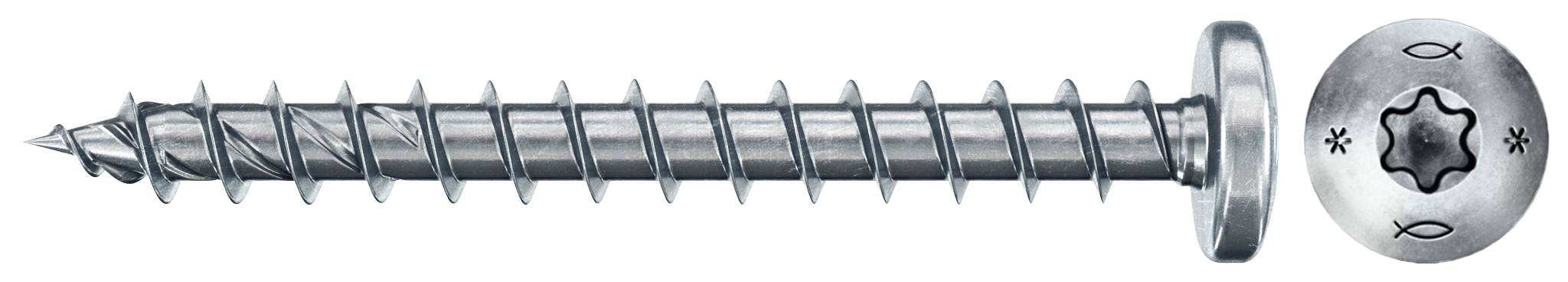 fischer PowerFast FPF II PTF je vrut do dřeva v bílém zinku s celým závitem a plochou hlavou s utahovací drážkou TX. Plochá hlava s hvězdicovou drážkou Torx poskytuje bitu skvělou stabilitu při šroubování vrutu. Půlkulatá hlava je ideální k upevňování kovových prvků na dřevo, např. tesařských úhelníků, třmenů, patek apod. Vrut s celým závitem se vyznačuje vyšší odolností proti vytažení.